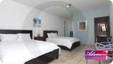 - 4 personas: 2 camas 'Queen', baño privado, nevera pequeña, closet, gavetero, 2 sillas, TV con cable y A/C