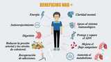 NAD+ es una coenzima esencial presente en cada célula del cuerpo. Su función principal es apoyar la producción de energía celular (ATP) y participar en procesos de reparación del ADN, funciones cerebrales, y metabolismo. Beneficios principales: Aumento de la energía celular. Mejora del enfoque mental y claridad. Apoya la función cerebral y la memoria. Promueve el metabolismo saludable y la quema de grasa. Ayuda en la desintoxicación celular. Disminuye el cansancio crónico y el agotamiento mental. Retrasa signos de envejecimiento a nivel celular.