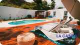 - Energía Solar y Agua de pozo tratada con el sistema SoftRain®, Piscina con calentador y luz Led, 3 Cámaras del seguridad en áreas comunes (parte frontal, marquesina, piscina), Hamaca, Mesa en madera exterior y sillas para 6 personas