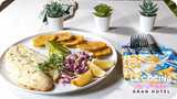 - Acompañantes a elegir: Arroz con habichuelas, Arroz Mamposteao, Tostones de plátano, Tostones de Pana, Papas Salteadas, Papas Fritas