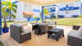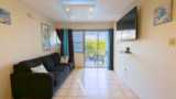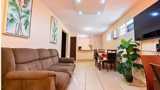Apartamento con 2 habitaciones (1 cama 'Queen' y 2 camas literas 'Twin'), A/C, TV, Wifi, Cocina equipada con enseres para comer y cocinar, Microondas, Tostadora, Estufa, Nevera, Cafetera, Comedor, Sofá, Abanico, Toallas de playa y de bañar, Productos de higiene (shampoo, jabón, etc.), Acceso para impedidos, Estacionamiento para 2 vehículos y Balcón