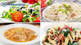- Selección de Ensaladas y Platos Fríos: Mezcla de verduras con 'toppings' de vegetales frescos y Surtido de Aderezos, Ensalada de Papas clásica, Ensalada de pasta cremosa de queso 'cheddar', Ensalada de pulpo, Ensalada de pollo 'Sweet BBQ', Ensalada de maíz 'light', Ensalada de Camarones 'Zesty Lime', 'Toppings' para hamburguesas, Pan con ajo y Rollos Artesanales